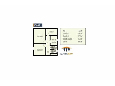 Le premier étage se compose d'un hall, de deux chambres à coucher, d’une salle de douche supplémentaire et d’une pièce grenier.